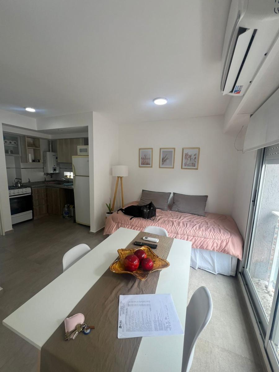 Código 7260-abc867 | Departamento nuevo ubicado en 6º piso al contrafrente compuesto de: living-comedor con cocina integrada, baño, un dormitorio con placard. Muy luminoso. Ventilación cruzada. Cuenta con estufa y aire acondicionado split. El edificio tiene pileta y quincho.